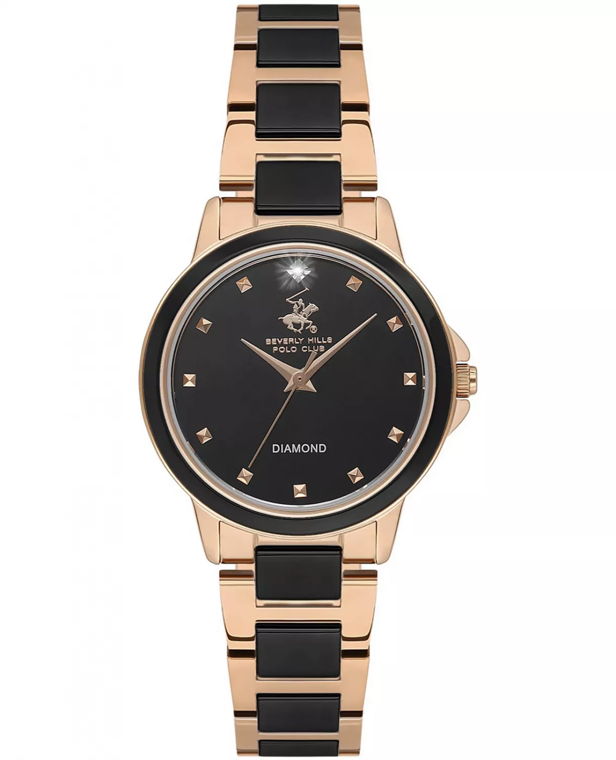 Женские наручные часы с надёжным кварцевым механизмом. Минеральное стекло устойчивое к мелким механическим повреждениям. Корпус часов изготовлен из нержавеющей стали с IP-покрытием. Безель с IP-покрытием. Класс водозащиты: 50 метров, позволит защитить корпус от случайных брызг или капель дождя. Стальной браслет с IP-покрытием и керамическими вставками на раскладной застёжке.