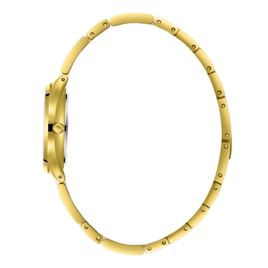 Женские наручные часы. Точность хода часов обеспечивает надежный кварцевый механизм. Циферблат защищён минеральным стеклом, обеспечивающим устойчивость к царапинам. Браслет из нержавеющей стали с IP-покрытием и керамическими вставками оснащён ювелирной застежкой.