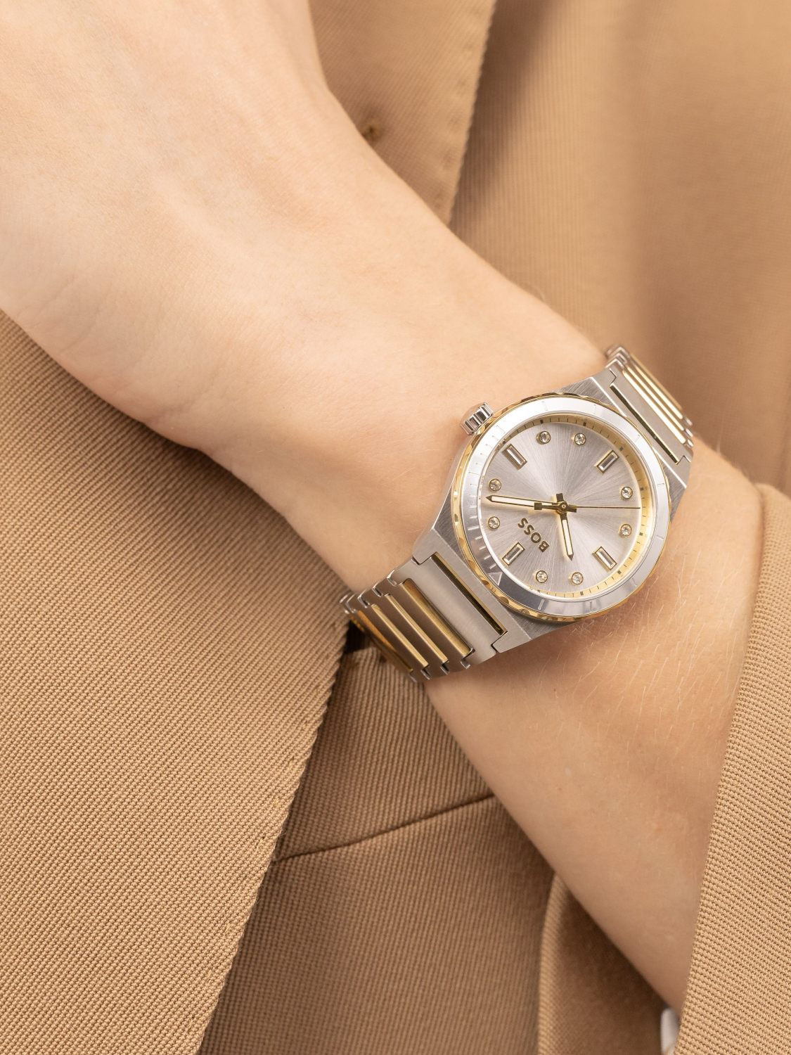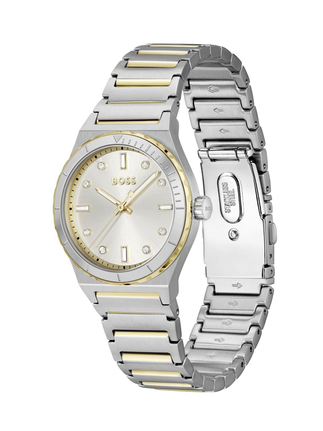 Двухцветный браслет из нержавеющей стали с раскладывающейся застежкой.