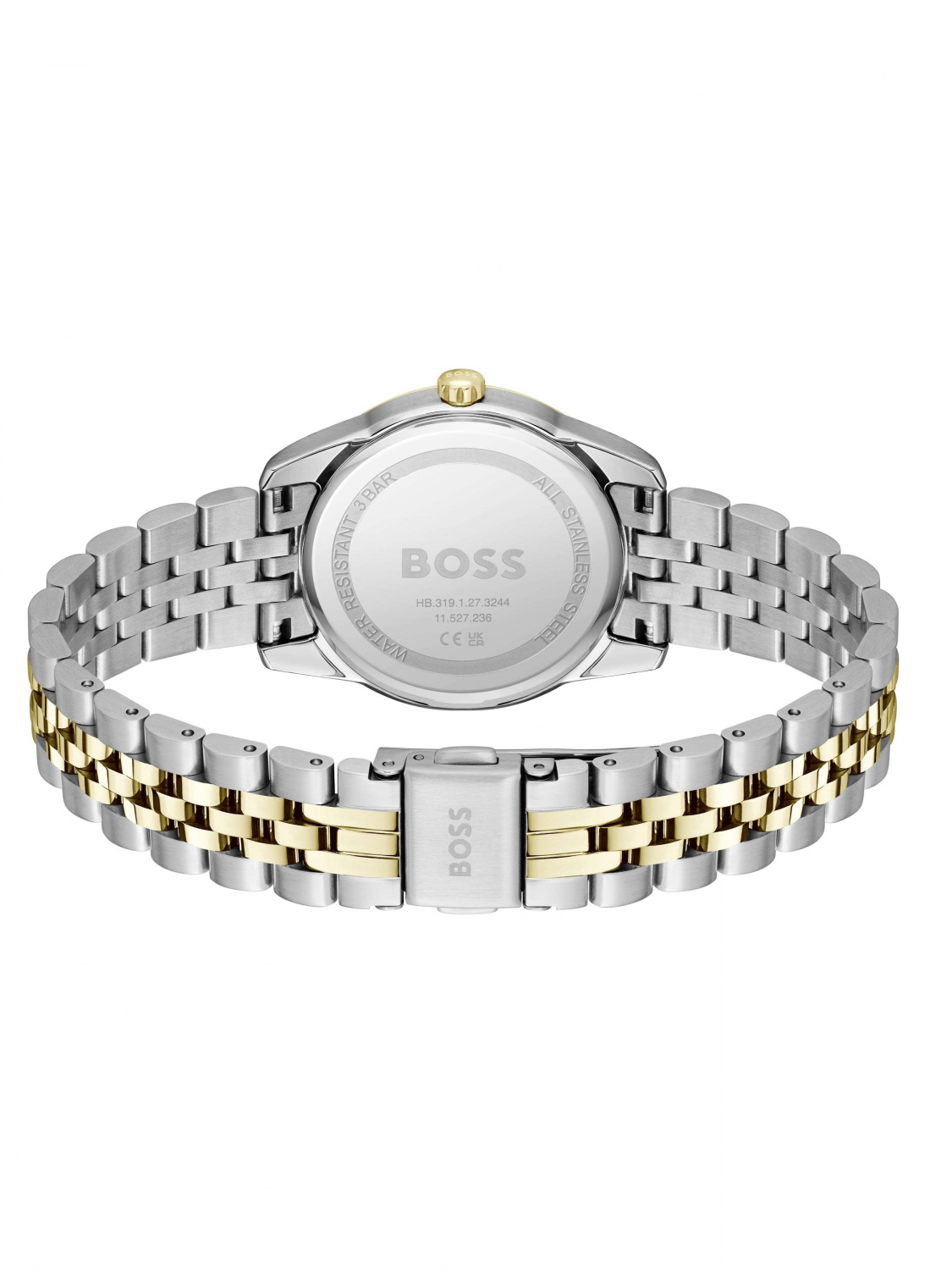 Корпус и браслет часов выполнены из нержавеющей стали с PVD покрытием золотого цвета.