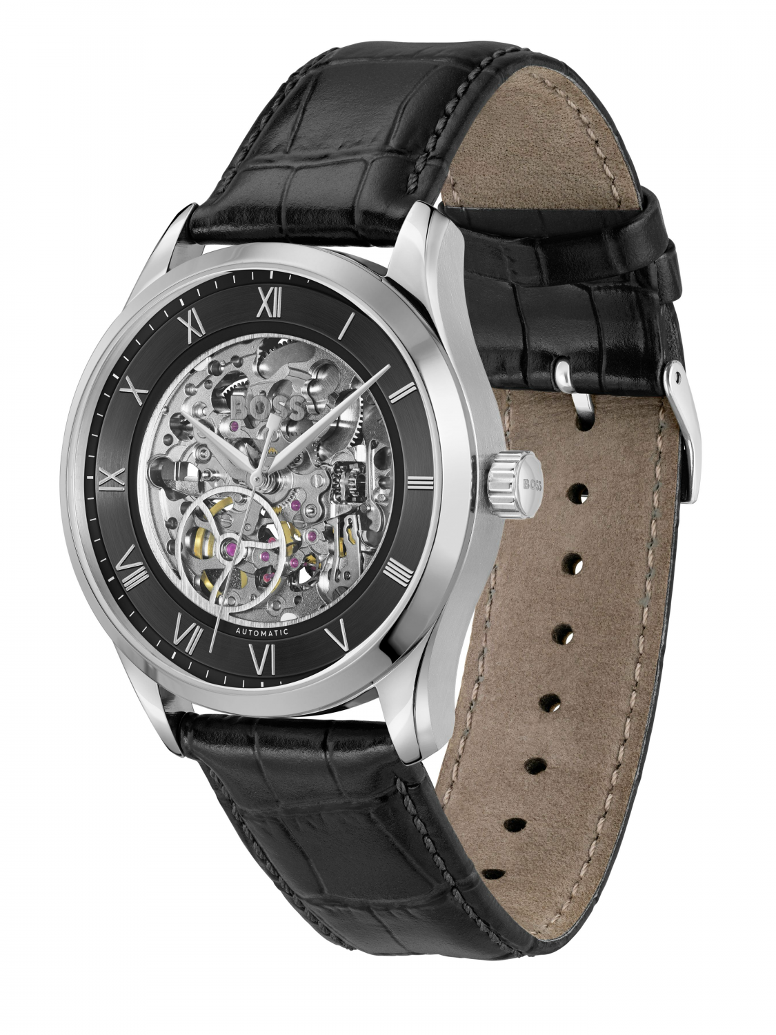 Мужские механические часы BOSS 1514234, коллекция PRINCIPLE SKELETON. Корпус часов выполнен из нержавеющей стали. Диаметр :41 мм. Водозащита 5 bar. Кожанный чёрный ремешок с классической застёжкой.