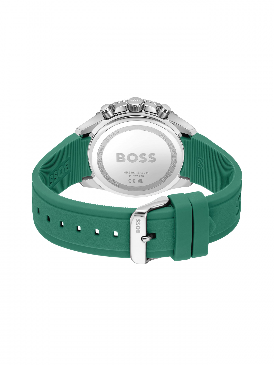Корпус часов выполнен из нержавеющей стали. Функции: хронограф, дата. Диаметр 44 мм. Силиконовый ремешок с классической застёжкой. Водозащита 5 bar.
