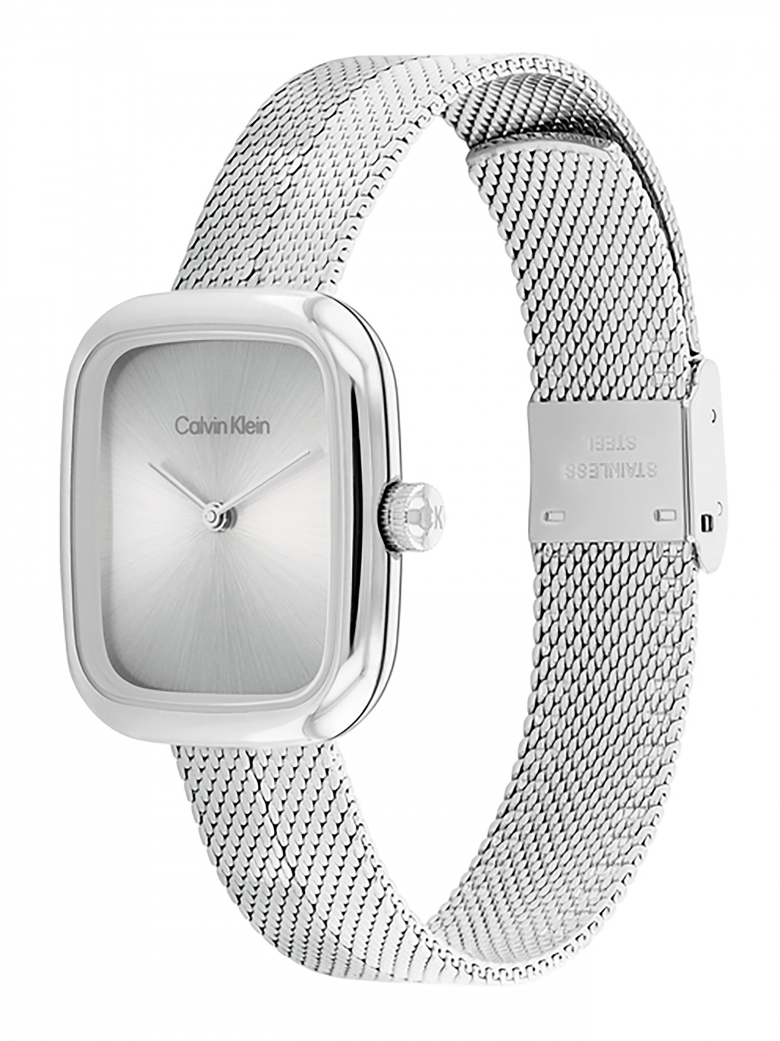 Серебристый циферблат защищен минеральным стеклом, которое устойчиво к мелким повреждениям и царапинам.