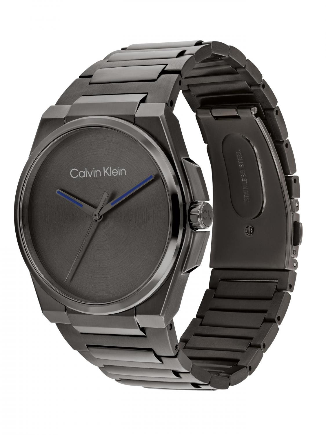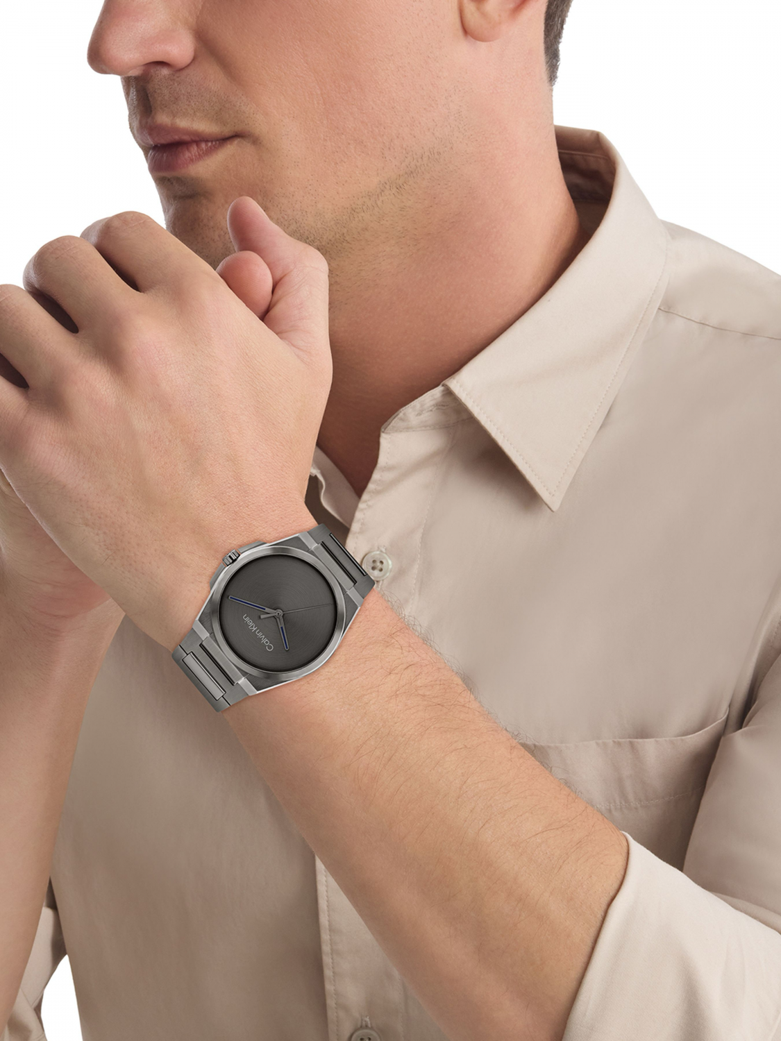 Calvin Klein 25200458 — это мужские кварцевые наручные часы из коллекции Meta-Minimal, выполненные в современном минималистичном стиле. Модель отличается монохромным серым дизайном с асимметричным циферблатом,защищённым минеральным стеклом. Диаметр 41 мм.. Браслет с раскладывающейся застежкой (клипсой). Водонепроницаемость 3 АТМ, защищены от случайных брызг и дождя, но не предназначены для плавания или принятия душа.