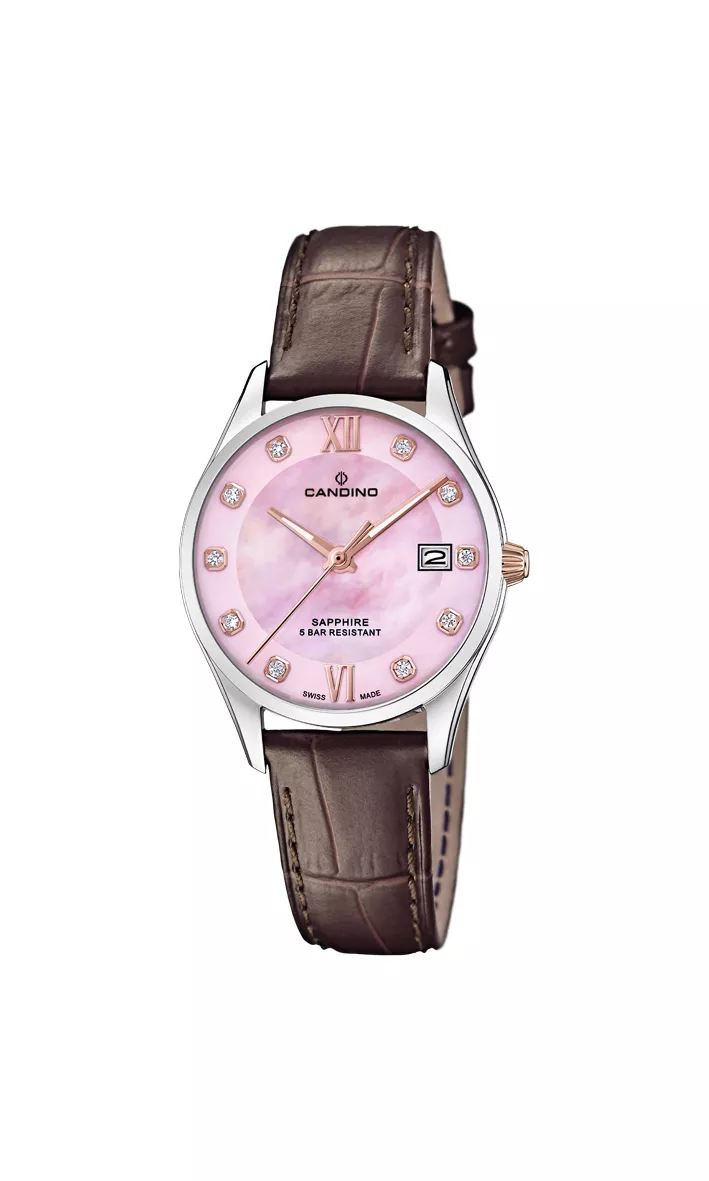 Женские швейцарские часы Candino Elegance, кварцевый механизм с высокой точностью. Сапфировое стекло устойчивое к появлению царапин, обладающее высокой прозрачностью. Класс водозащиты: 50 метров, позволит защитить корпус от случайных брызг или капель дождя. Корпус часов изготовлен из стали, серебристого цвета.