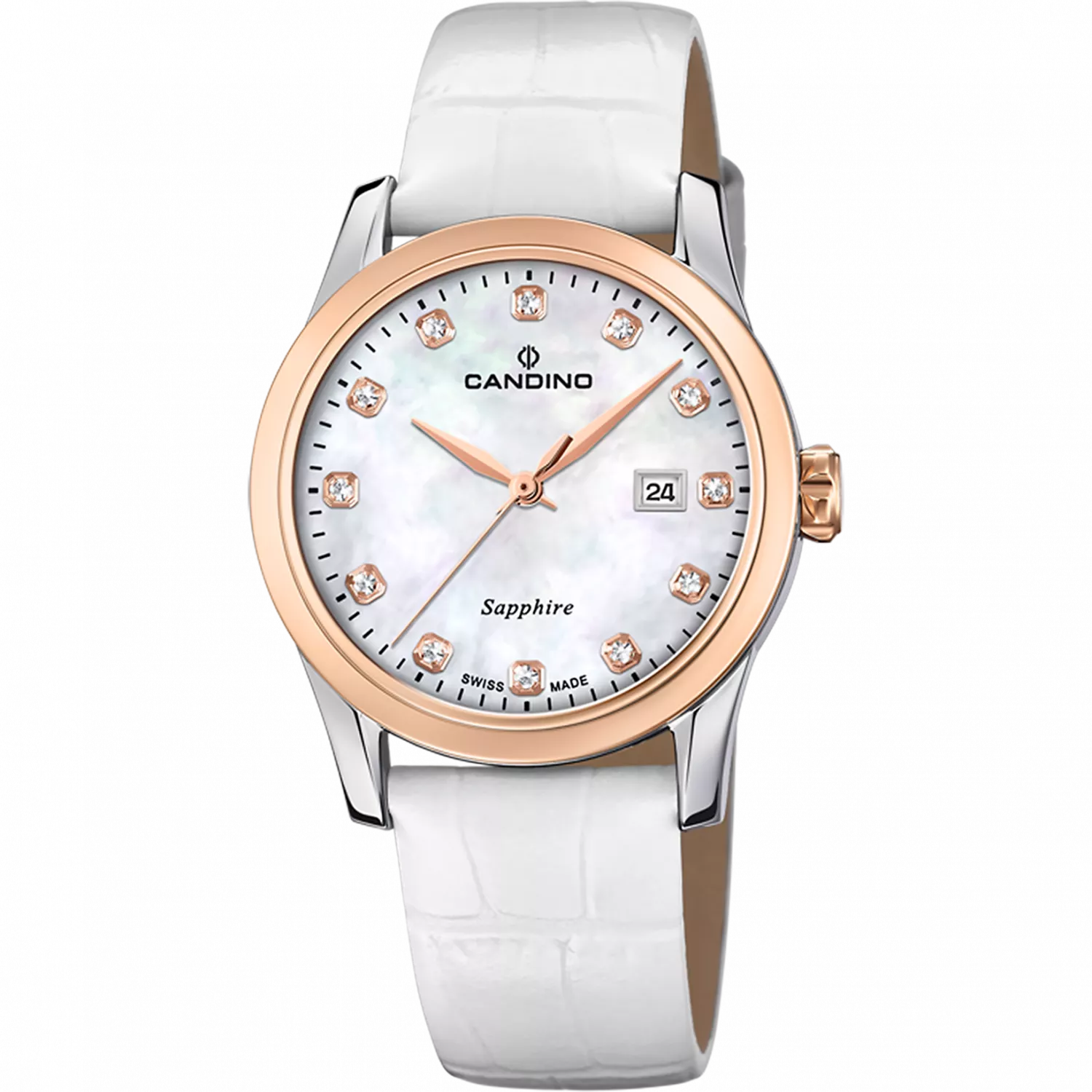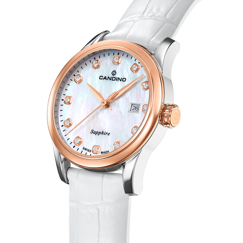 Женские швейцарские часы с сапфировым стеклом Candino Elegance, кварцевый механизм с высокой точностью. Сапфировое стекло устойчивое к появлению царапин, обладающее высокой прозрачностью. Класс водозащиты: 50 метров, позволит защитить корпус от случайных брызг или капель дождя. Корпус часов изготовлен из стали