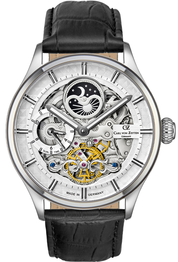 Выразительный дизайн этих скелетонизированных часов станет ярким акцентом вашего неповторимого образа. Время завершать начатое. Мужские часы-скелетоны Neustadt с круглым стальным корпусом. В механизме 22 камня, частота 21600 полуколебаний в час. Индикатор день/ночь. Второй часовой пояс. Гильошированный циферблат с накладными метками в виде штрихов. Завинчивающаяся прозрачная задняя крышка, через которую можно рассмотреть отдельные элементы механизма. Вороненые винты. Кожаный ремешок с классической застежкой.