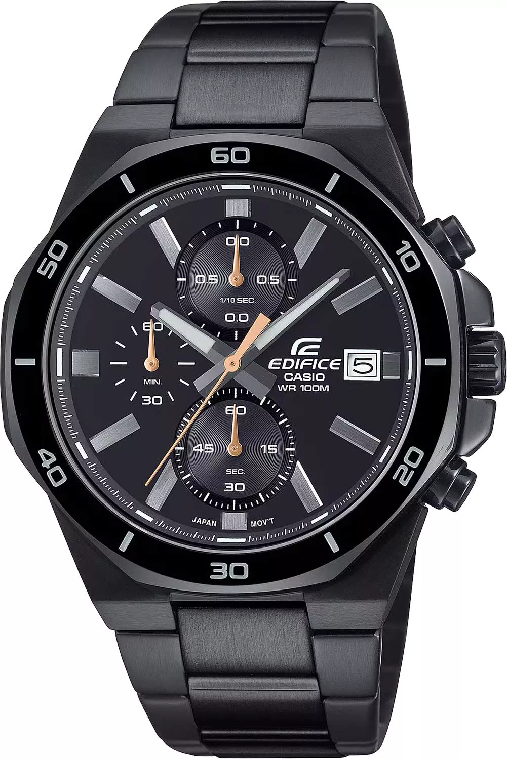 Необритовое светонакопительное покрытие обеспечивает длительное послесвечение в темноте даже после кратковременного нахождения на свету. Часы-хронограф с секундомером с точностью показаний 1/10с и временем измерения 1ч. Циферблат с метками в виде штрихов. Окошко даты находится в положении 3 часа. Заводная головка с защитой. Батарея рассчитана на 2 года. Браслет с тройной раскладывающейся застежкой, расстегиваемой одним касанием.