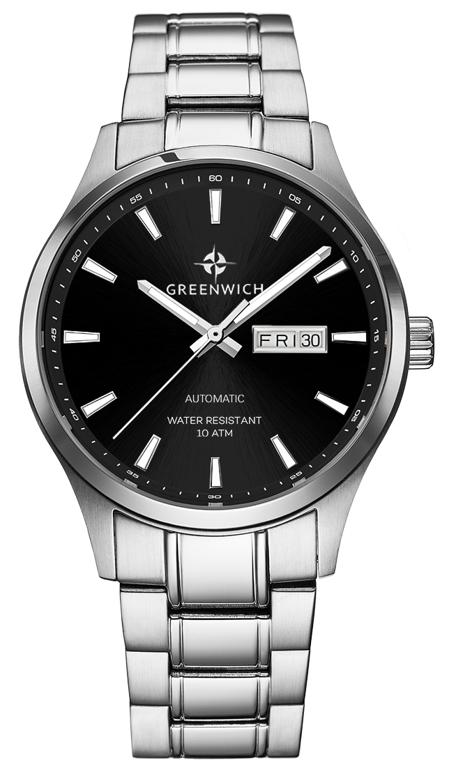 Элегантность, классические линии и уважение традиций задают тон дизайну часов серии Good Luck. Корпус модели, состоящий из трех частей, можно с уверенностью назвать массивным: его диаметр равен 43 мм. Корпус сделан из нержавеющей стали, украшенной двумя видами полировки: зеркальной по безелю и матированием. Задняя крышка прозрачная: вы сможете без проблем любоваться автоматическим механизмом TMI, на роторе которого выгравирован силуэт парусника, символа английских мореходов, и название серии. На фоне черного циферблата с полировкой и эффектом градиента расположились накладные риски и крупные стрелки. Они хорошо читаются при любых условиях освещения — люминесцентный состав, которым покрыты эти элементы, светится в темноте. В модели установлено минеральное стекло. Повышенная водостойкость составляет 10 атмосфер. Часы дополняет браслет из нержавеющей стали с удобной в использовании и надежной застежкой-клипсой.