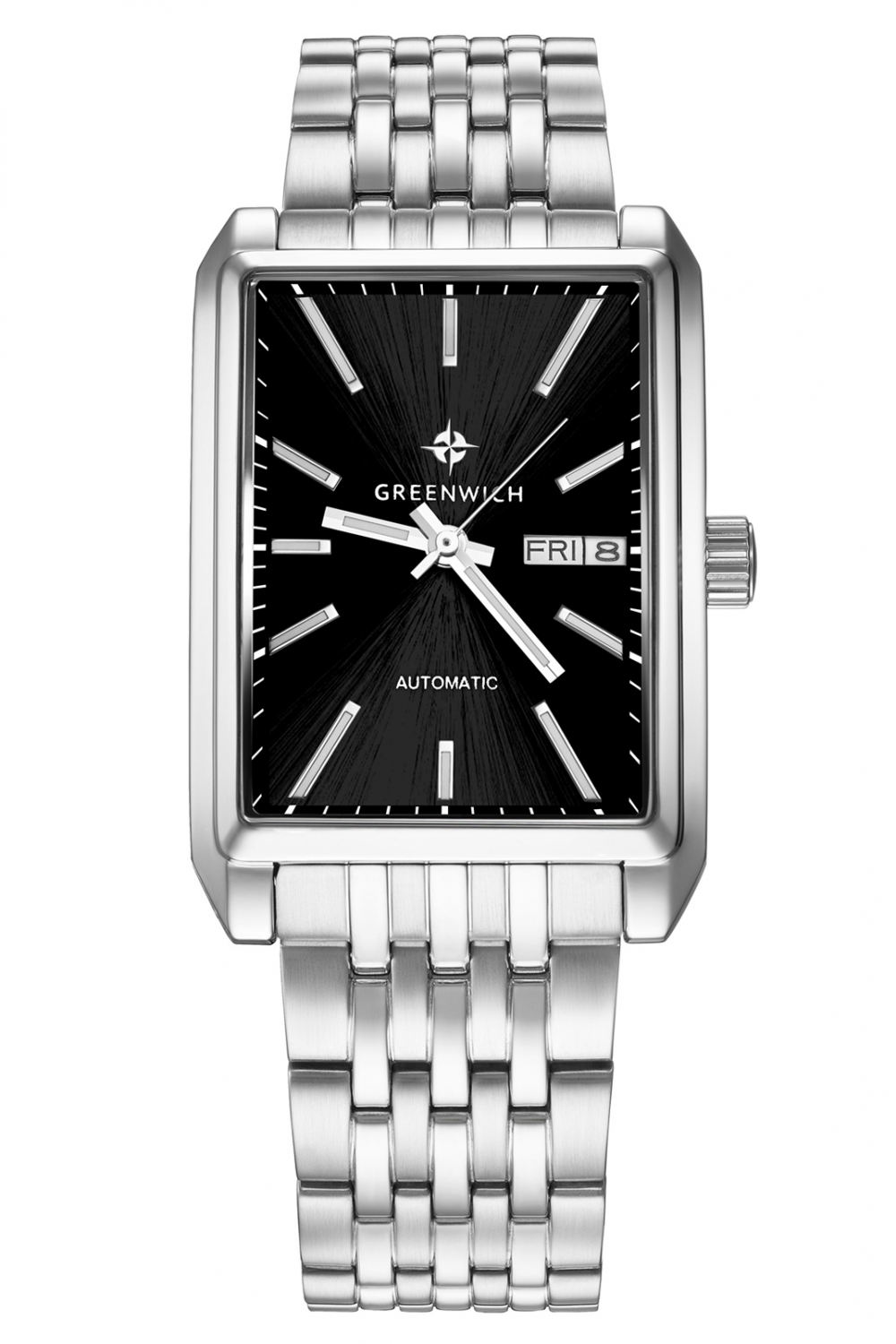 Новое прочтение классических часов от Greenwich: часы в прямоугольном корпусе со скошенными углами серии Caravel. В качестве основного материала была выбрана гипоаллергенная нержавеющая сталь, из нее сделаны корпус и браслет модели. За движение стрелок, дисков даты и дня недели на черном циферблате отвечает механизм с функцией автоподзавода. За его работой можно наблюдать через прозрачное окошко на задней крышке часов. Стрелки и риски светятся в темноте — они покрыты люминесцентным составом. На браслете установлена застежка-клипса, надежная и удобная в использовании. Механические часы Caravel подходят для ежедневного использования, тем более, что в таком режиме ротор будет заводить пружину механизма от обычных движений руки, без необходимости завода с помощью заводной головки.