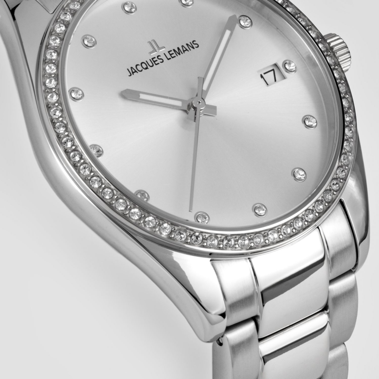 Женские кварцевые часы коллекции Derby. Круглый стальной корпус. Безель украшен кристаллами Swarovski. Стрелки с люминесцентным покрытием,которое светится в темноте. Метки в виде точек кристаллов. Стальной браслет с раскладывающейся застежкой. Водозащита 10АТМ/bar.