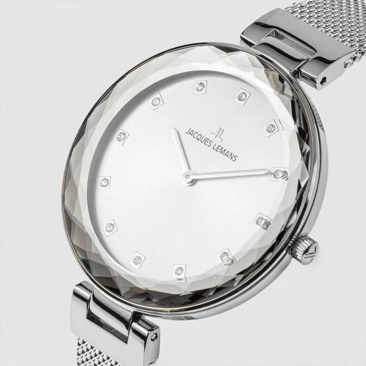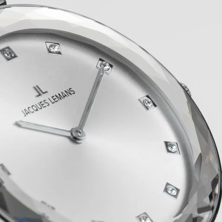 Женские наручные кварцевые часы коллекции Nice. Круглый стальной корпус. Стеклянный граненый безель. Циферблат с метками в виде точек, украшенных кристаллами Swarovski.