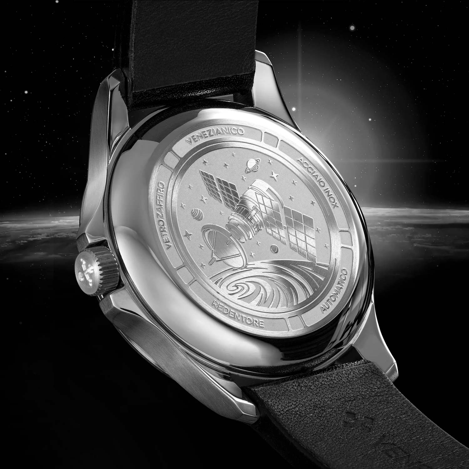 Эти часы сочетают в себе минимализм и элегантность с вневременным дизайном и идеально подходят для любого случая. Женские механические часы с автоподзаводом Redentore Ultrablack 36. Круглый стальной корпус из нержавеющей стали 316L. Абсолютно черный циферблат без меток с логотипом бренда является результатом использования эксклюзивной японской краски Musou Black™, которая способна поглощать 99,4% света, обеспечивая незабываемые визуальные впечатления. Циферблат защищает сапфировое стекло с антибликовым покрытием. Клиновидные стрелки в стиле Dauphine. Автоматический механизм с функцией взлома. В механизме 24 рубина, 21600 полуколебаний в час. Запас хода 41 час. Двунаправленный автоподзавод. Возможность ручного завода. Задняя крышка крепится на 6-ти винтах и украшена выгравированным изображением космического спутника и планет. Рифленая заводная головка с защитой. Ремешок из кожи Anilveau с классической застежкой. Есть мужская парная модель 1221510.
